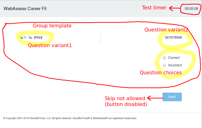 - elapsed (number) - number of seconds elapsed since the start of this test (may be present even if the test doesn’t have a time limit). The start of the test means the initial presentation of the first group, as observed by the server.